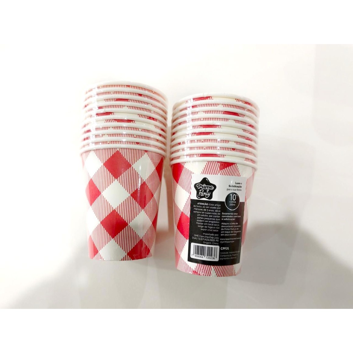 2. KIT C/ 10 COPOS 250ML QUADRICULADOS DESCARTÁVEIS EM PAPEL (VERMELHO)