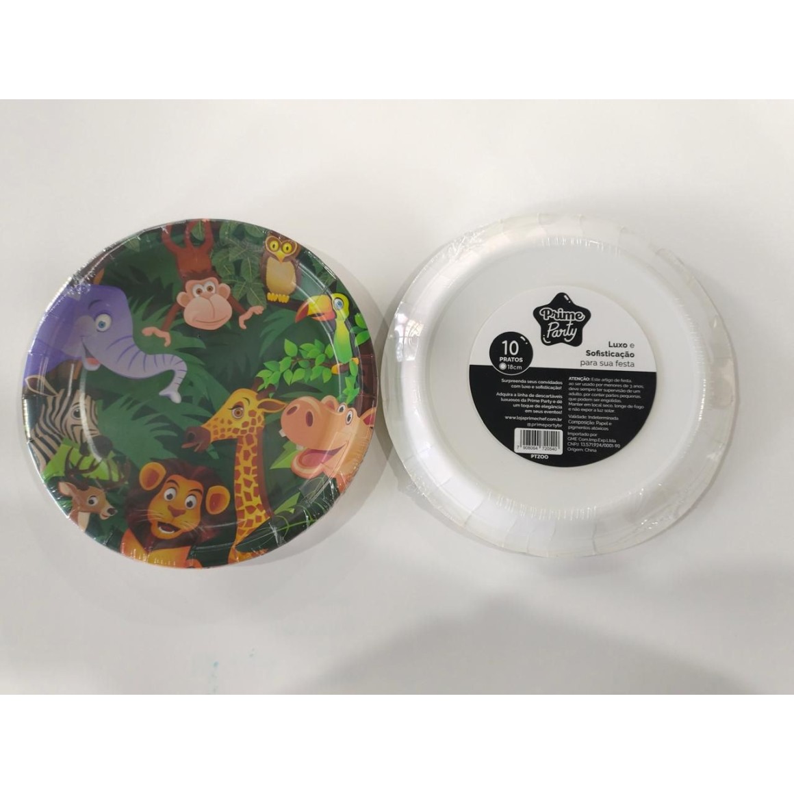 Pratos descartáveis em papel especialmente criados para a festa no zoológico